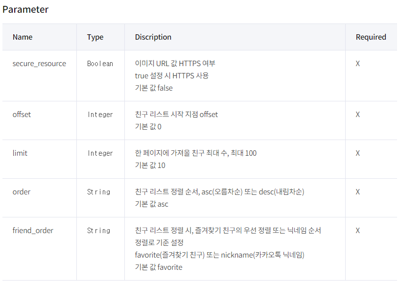 (1/3)에서 다루었던 메시지 보내기와 달리 친구 목록 가져올때에는 HTTP GET 요청을 통해 진행된다.