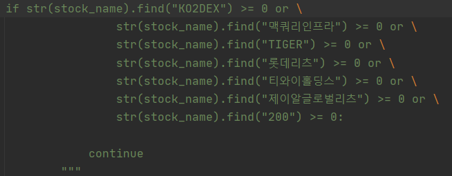 > 최근 ROE, PER, PBR 값을 불러와서 내가 원하는 기준을 초과하거나 미만인 경우를 선별하여 회사 반환