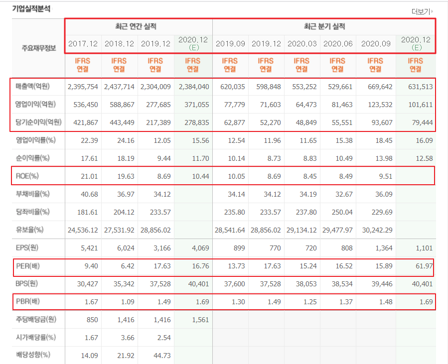 기업별 페이지로 이동한 후에 우선 가져오고 싶은 데이터는 아래 그림의 표 내용("기업실적분석")이다.