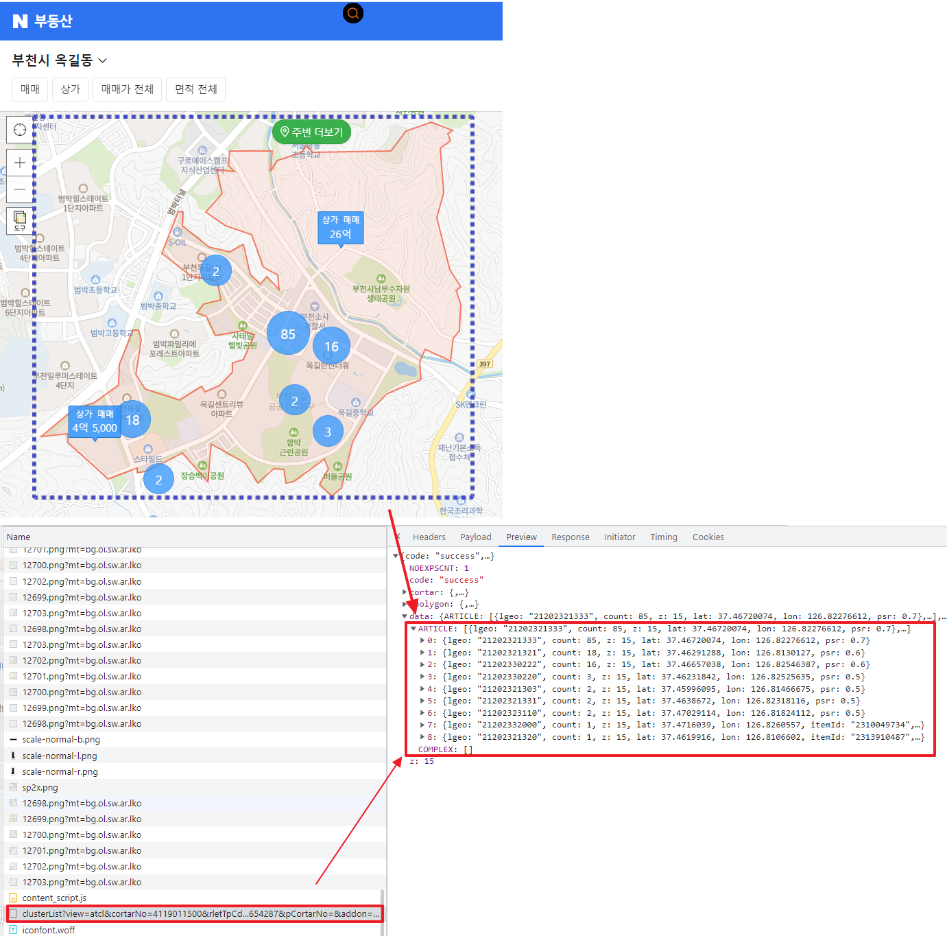4. 각 물건 별 데이터 요청 : https://m.land.naver.com/cluster/ajax/articleList