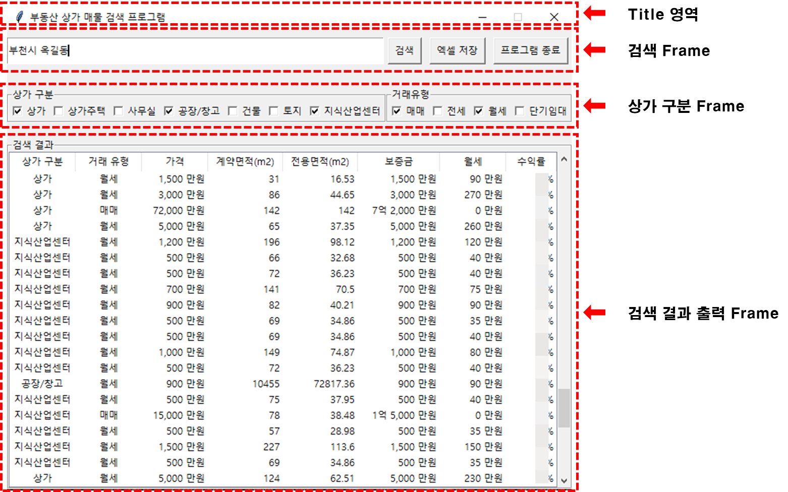 root.title("부동산 상가 매물 검색 프로그램")