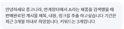 검색결과 목록에서 제목, 링크, 작성일 정보를 추출한 후, 해당 물건 상세 페이지에서 내용과 가격정보를 크롤링하면 되는 비교적 간단한 크롤링 요청 건 이다. 추가 조건 중 하나는 "판매완료" 여부를 확인하면 된다.